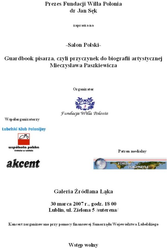 30 marca 2007 r., godz. 18:00 w Lublinie, odbyła się wystawa w Galerii Źródlana Łąka.